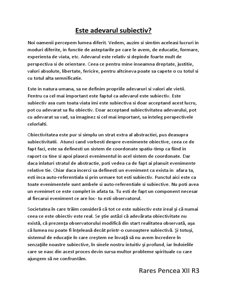 A Fi Obiectiv Sau Subiectiv