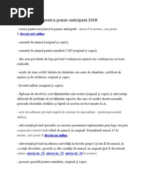 Acte Necesare Pentru Inscrierea La Pensie Anticipata Partiala