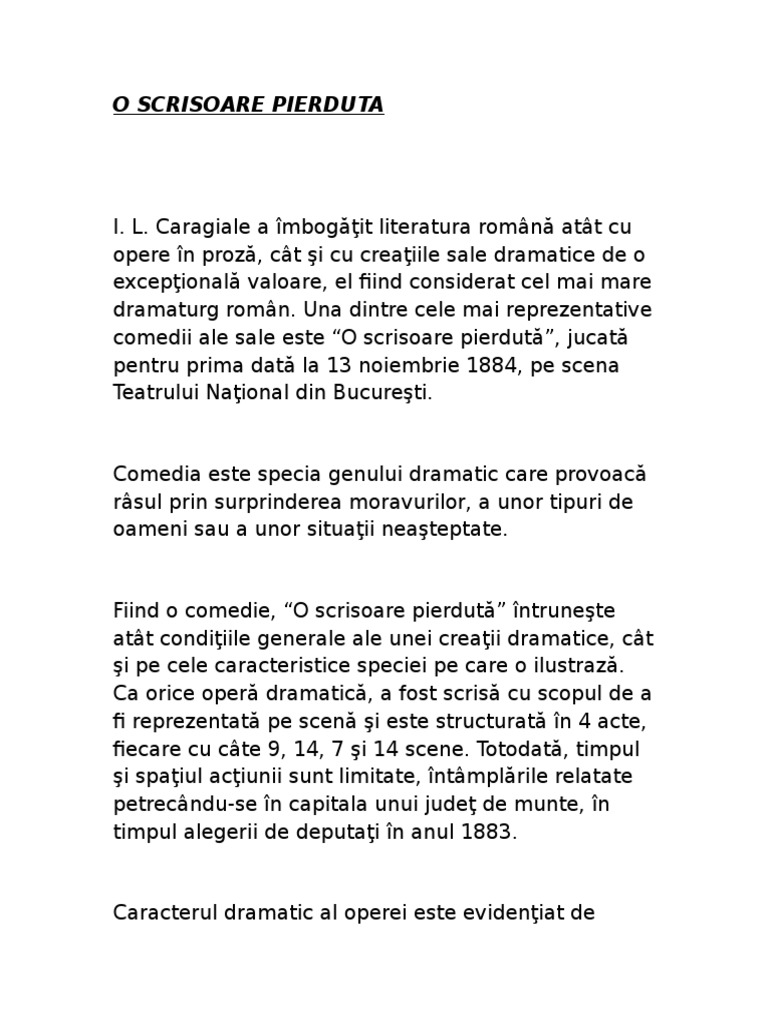 Gen Dramatic Specia Comedie O Scrisoare Pierdută Docx