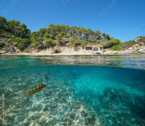 Spain Mediterranean Coastline With A Beach And Underwater An