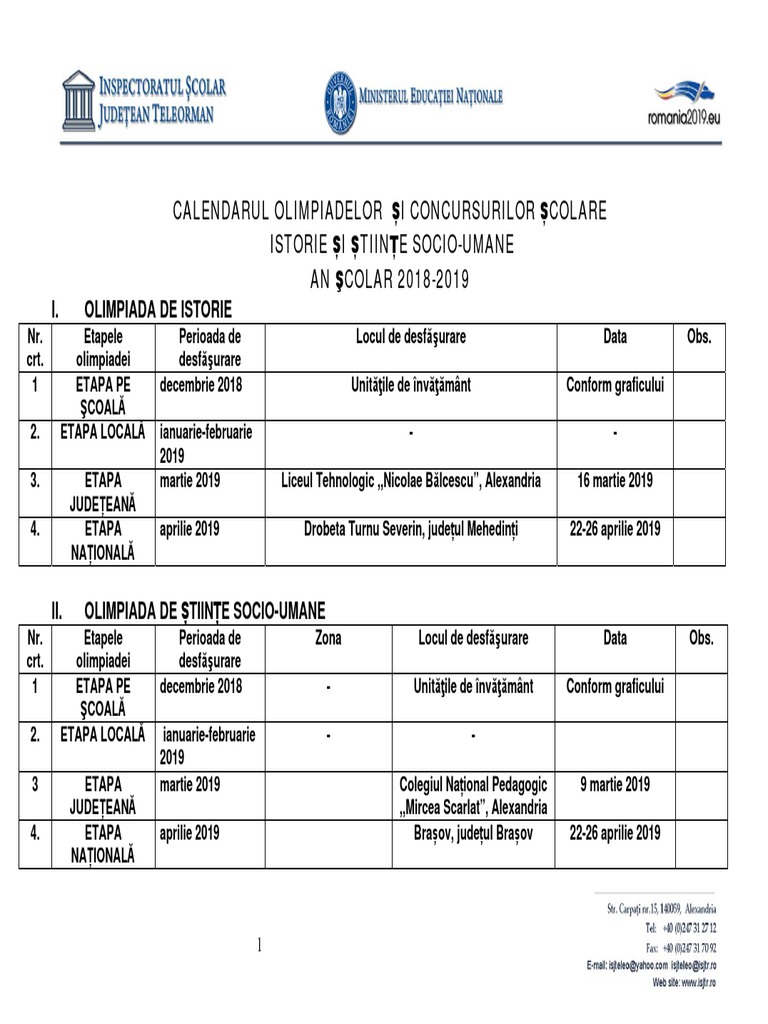 A Calendar Olimpiade Si Concursuri Ist Socio Umane 2019