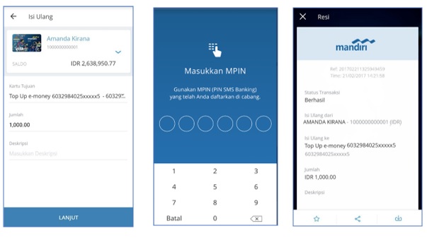 Ada beberapa cara untuk isi ulang e money atau top up e toll mandiri lewat hp android yang bisa kamu pilih diantarnya menggunakan aplikasi mandiri online tokopedia bukalapak maupun sms banking mandiri. Cara top up e money mandiri di tokopedia 14 januari 2020 oleh admin cara top up e money mandiri di tokopedia tidak jauh berbeda dengan saat kita top up kartu e toll online melalui aplikasi lain yaitu cukup masukan nomor kartu uang elektronik kemudian pilih nominal lalu lakukan pembayaran dan terakhir update saldo. Nikmati kemudahan dan kenyamanan hidup dengan mandiri e money di setiap transaksi harian anda transaksi anda menjadi lebih mudah dan praktis tanpa membawa uang tunai dan menunggu kembalian. Transaksi akan berhasil setelah melakukan pembayaran.