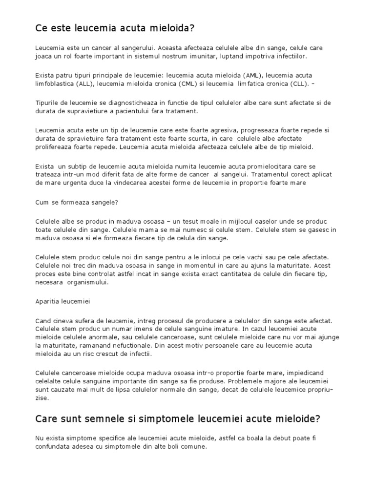 Leucemia Mieloida Acuta Simptome Diagnostic Tratament
