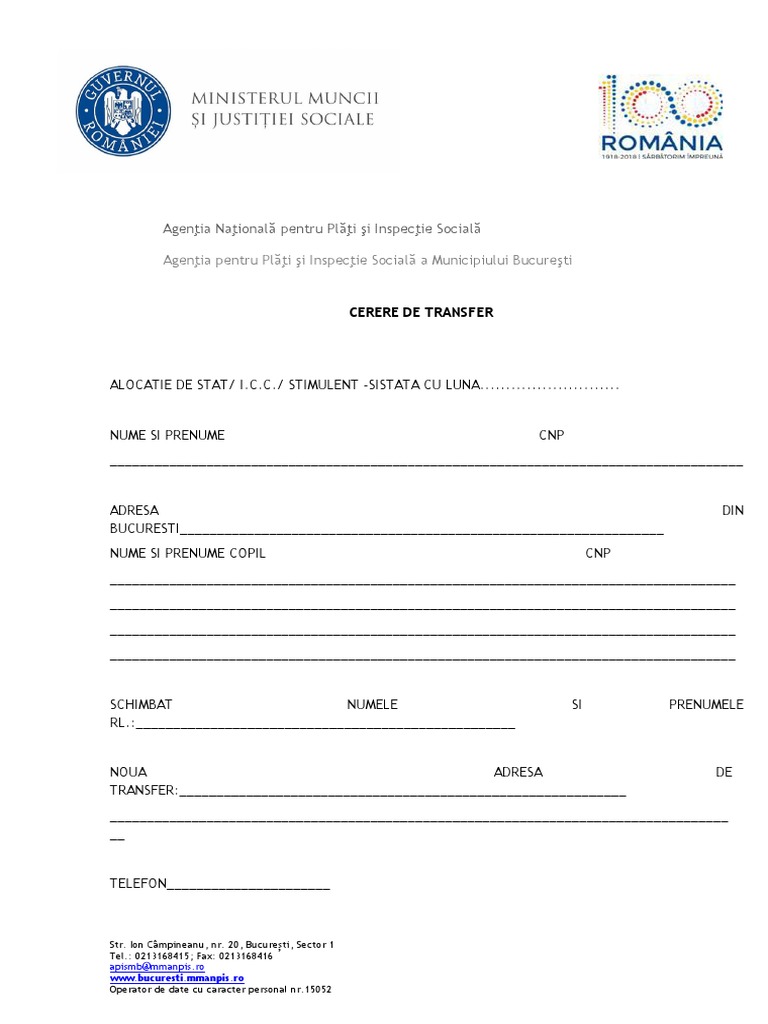 Cerere Transfer Alocatie De Stat