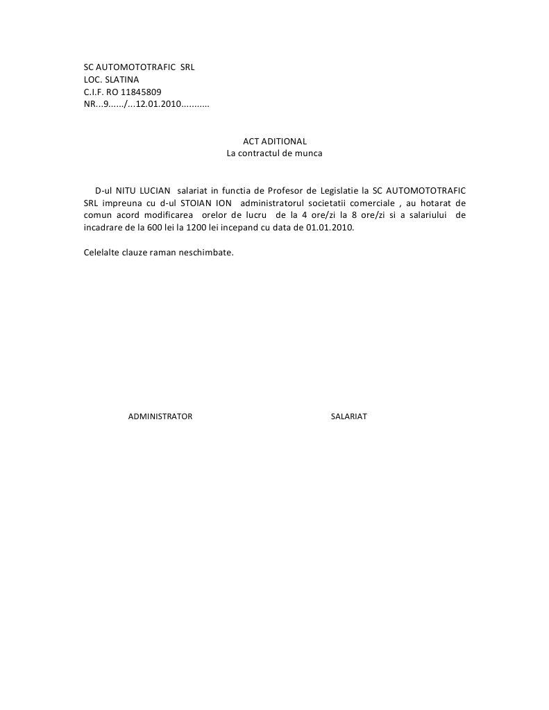 Act Aditional La Contract De Munca