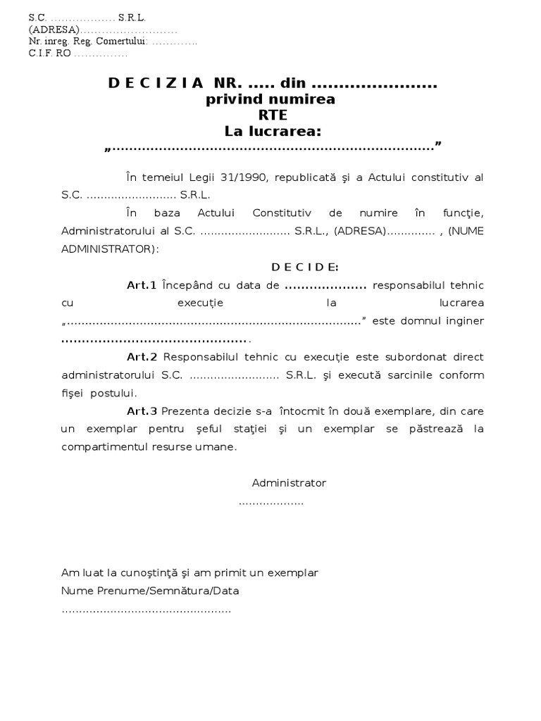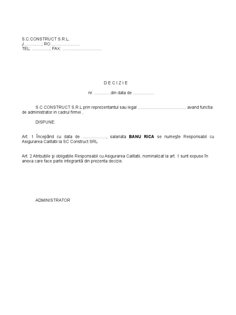Decizie De Numire A Dirigintelui De Santier Doc Document
