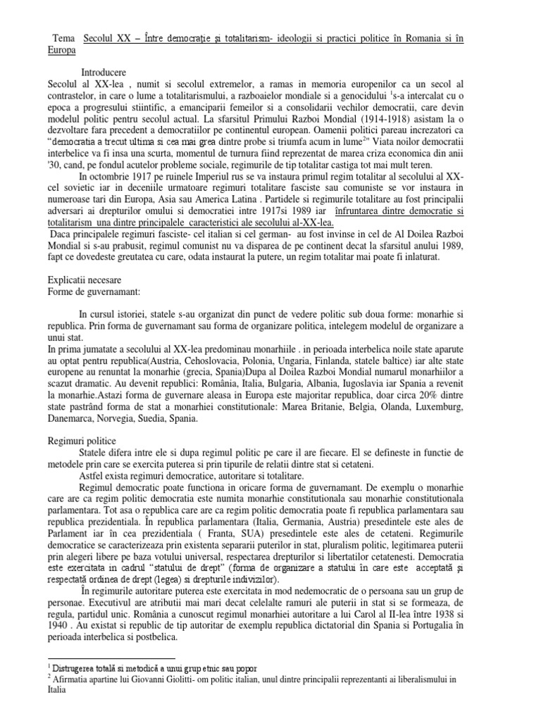 Democratie Si Totalitarism In Europa Sec 20