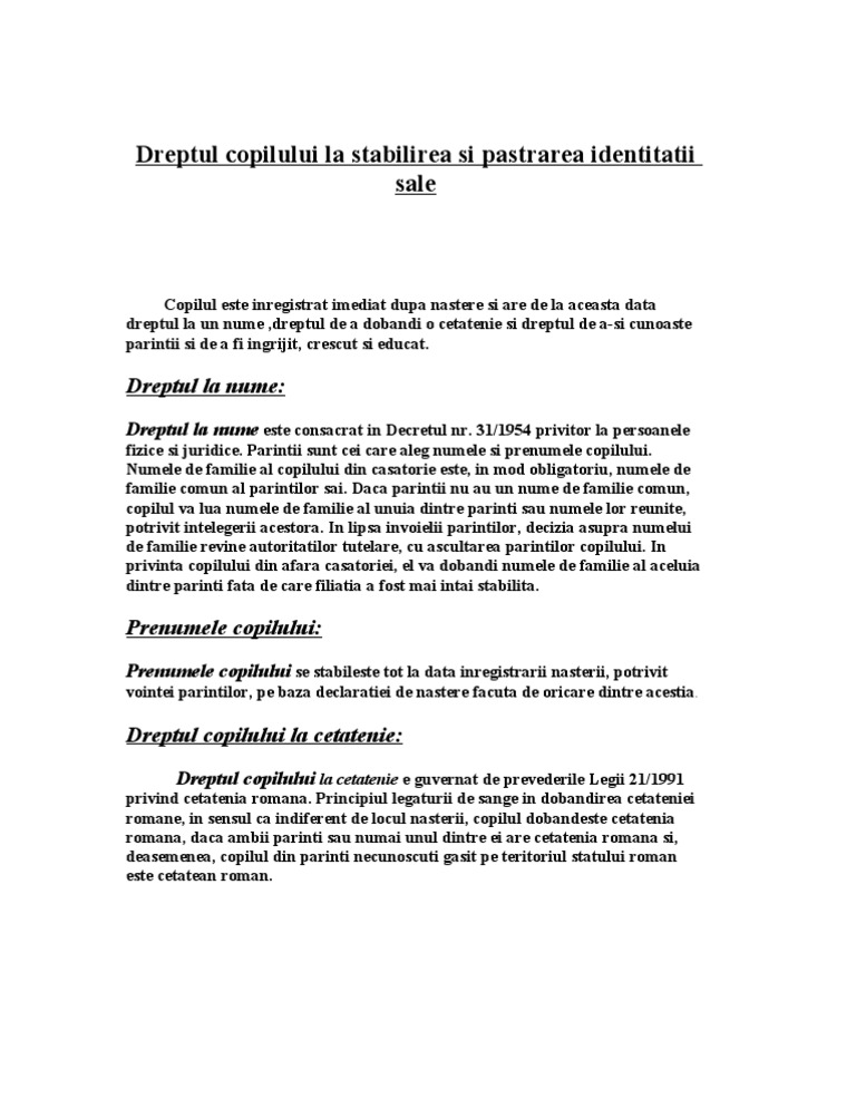Dreptul Copilului La Stabilirea Si Pastrarea Identitatii Sale