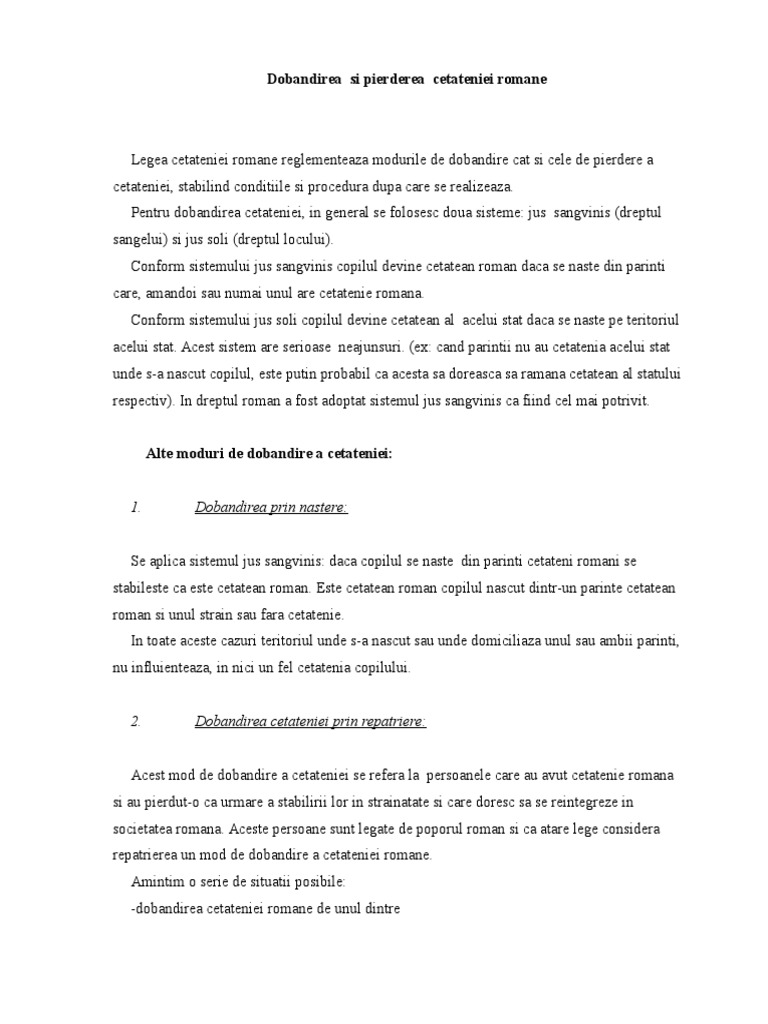 Referat Dobandirea Cetateniei Romane Drept 180756 Regielive