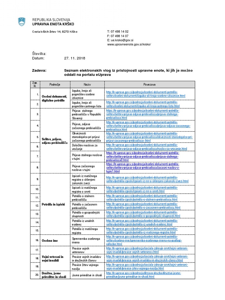 Seznam Elektronskih Vlog Portal Euprava Nov 2018