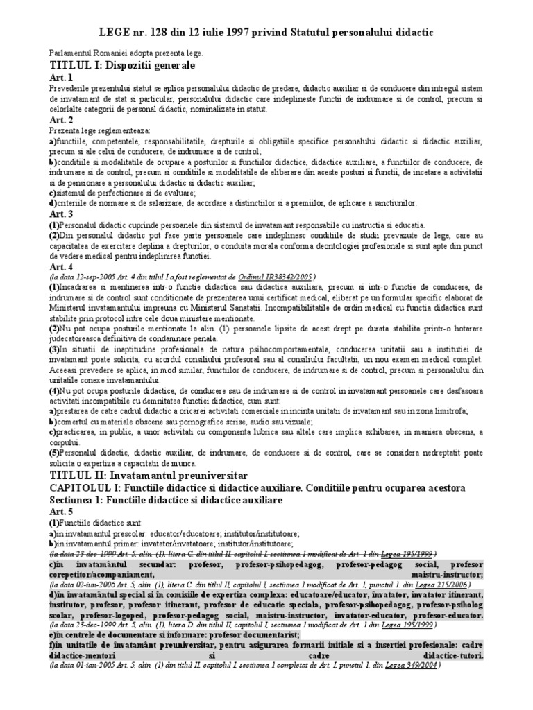 Legea Nr 128 Din 1997 Privind Statutul Personalului Didactic Cu