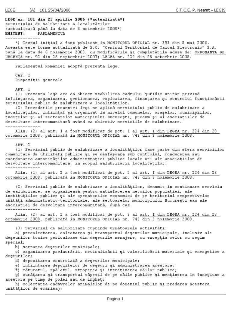 Legea 101 2006 A Serviciului De Salubrizare A Localitatilor