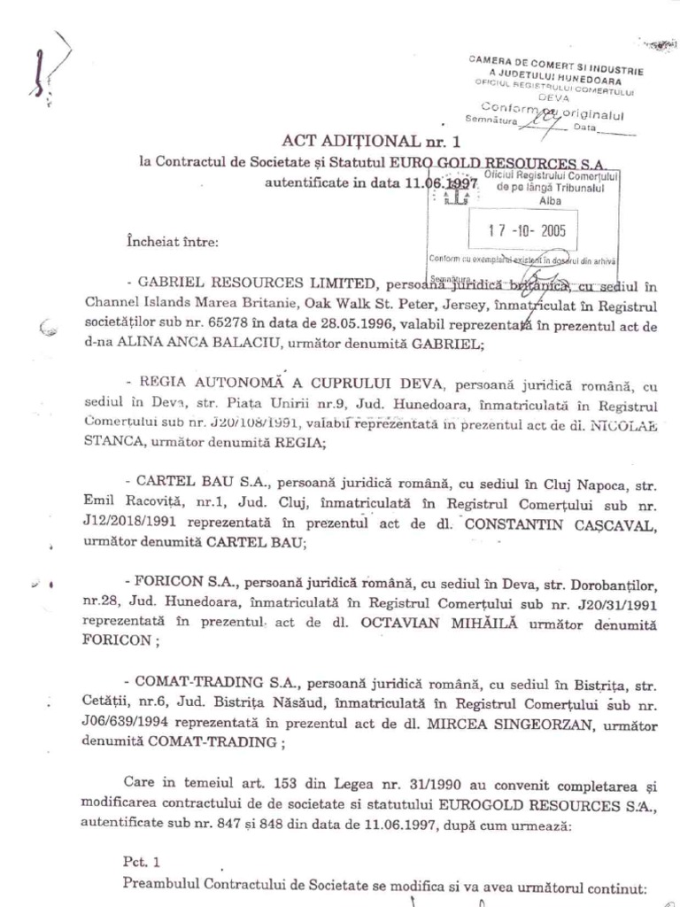 Act Aditional Nr 1 Euro Gold Resources 1997